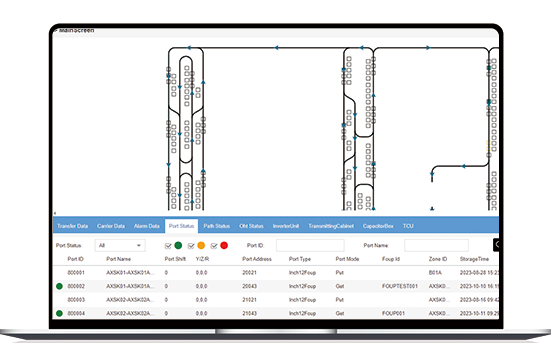 Performs OHT path planning and scheduling, utilizing path algorithms to find the optimal route among multiple options. Provides real-time traffic monitoring to avoid potential accident points. Connects with the MES's HOST, converts transmitted transport and control commands into AMHS control, and reports relevant status information to the HOST.